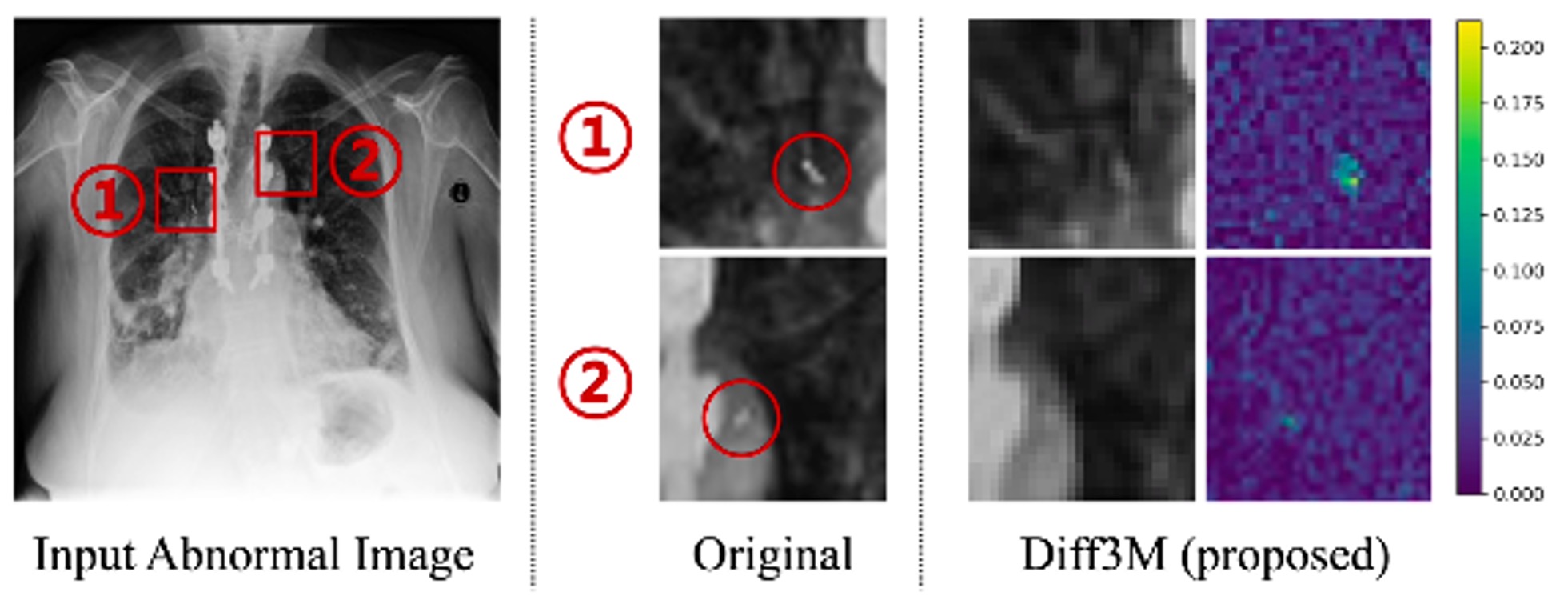 Unsupervised anomaly detection (UAD) in medical imaging is crucial for identifying pathological abnormalities without requiring extensive labeled data. However, existing diffusion-based UAD models rely solely on imaging features, limiting their ability to distinguish between normal anatomical variations and pathological anomalies. To address this, we propose Diff3M, a multi-modal diffusion-based framework that integrates chest X-rays and structured Electronic Health Records (EHRs) for enhanced anomaly detection. Specifically, we introduce a novel Image-EHR Cross-Attention module to incorporate structured clinical context into the image generation process, improving the model’s ability to differentiate normal from abnormal features. Additionally, we develop a static masking strategy to enhance the reconstruction of normal-like images from anomalies. Extensive evaluations on CheXpert and MIMIC-CXR/IV demonstrate that Diff3M achieves state-of-the-art performance, outperforming existing UAD methods in medical imaging. Our implementation is available at https://github.com/nth221/Diff3M.